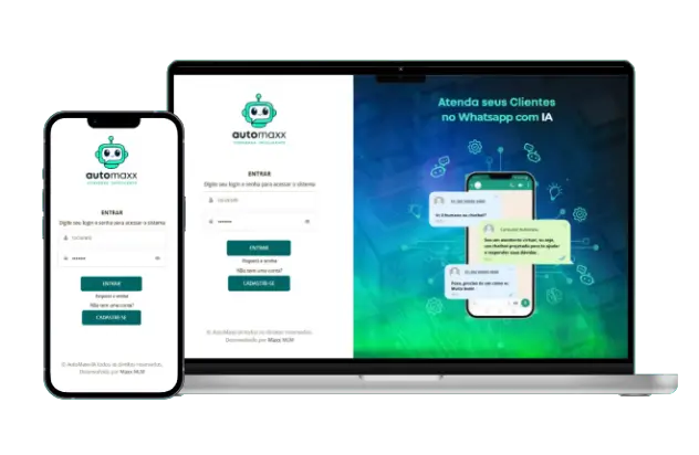 A plataforma AUTOMAXX IA é totalmente adaptada à experiência do usuário. Adicione logo, background, cores,informações institucionais, etc.