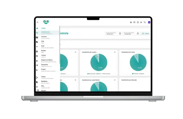 Monitore desempenho, satisfação e interações em tempo real com dashboards completos.
